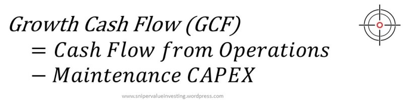 - Back to point #8, capital expenditures (CAPEX) can be split into two types: growth and maintenance CAPEX. Growth CAPEX is the CAPEX that is incurred for the company to scale and expand, while maintenance CAPEX is the CAPEX incurred to maintain the company’s operations in good shape. A good indication of maintenance CAPEX is the depreciation and amortization (which is why EBITDA isn’t a very good indicator contrary to what most institutional investors believe). It is important for us to differentiate between maintenance CAPEX and growth CAPEX to discuss the quality of the company. As such, I would like to introduce another term: Growth Cash Flow (GCF):